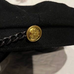 Stylish black cap with a sleek chain detail. Perfect for adding a touch of sophistication to any outfit.