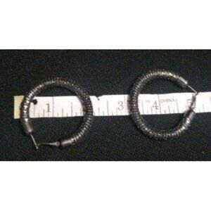 This is a pair of Gun smoke colored black chain earrings with a 1.25" Diameter.