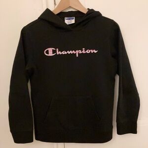 Girls size 16 XL black Champion hoodie with front pocket in good condition.