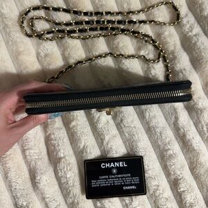 Black Chanel Mademoiselle wallet on unbranded chain crossbody