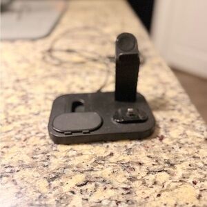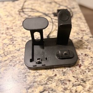 Versatile black charging dock for multiple devices. Compact and efficient design.