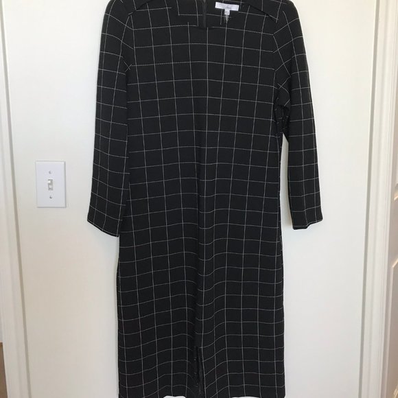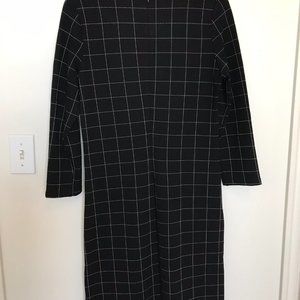Very flattering black dress, perfect for fall with some great boots! Brand new with tags, never been worn. I'm 5'5" and it hit just below my knees.