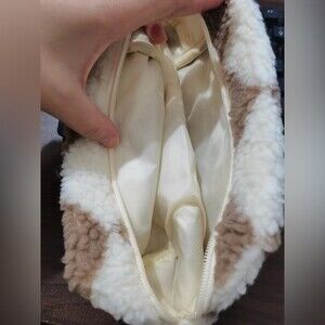 Black Checkered Plush Cosmetic Makeup Bag Pouch in Teddy Bear Fleece