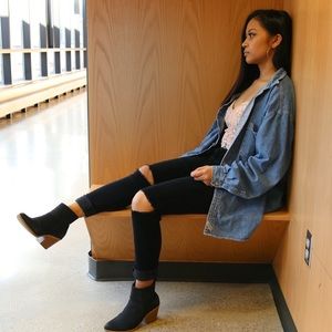 Such a staple piece to have these booties in your closet! Can be worn several different days (like I showed above), from a girls day out to a girls night out! The brown on the bottom allows for beautiful contrast for any outfit and helps it look put together. I wore them a good amount of times but there is barely any signs of damage!