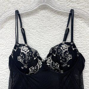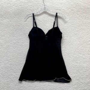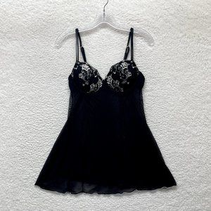 Black Chemise Slip Lingerie Womens M Medium Black Sheer Mesh Padded Embroidered