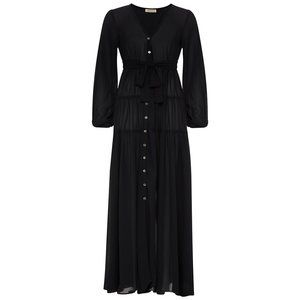 -Button-up long sleeve maxi dress