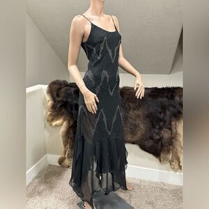 Black Chiffon V-back Sleeveless All Over Beaded Evening Dress/Party Dress