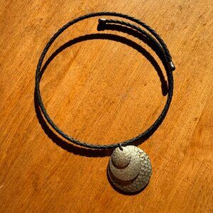 Black Choker with Hammered Silver Circles Necklace
