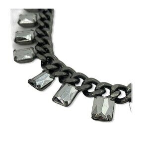 Black Chunky Chain Event Necklace With Rectangular Crystal Accents Evening