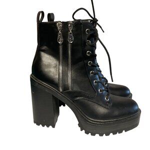 Black Chunky Lace-Up Ankle Boots Sz 9 - 4.5" Heel Guess GBG Goth Emo Style
