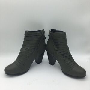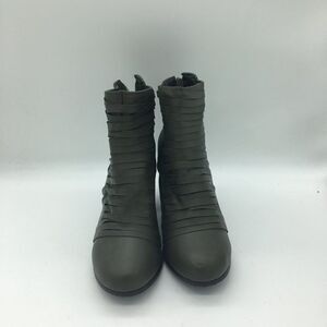 Black Chunky Mid Heels Round Toe Slip On Ankle Boots With Zipper