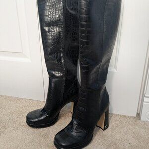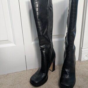 Black Circus by Sam Edelman knee high croc embossed boots size 8 NWOT