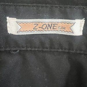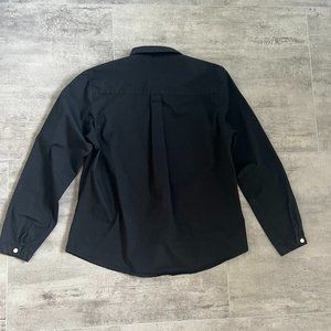 Classic button-down shirt in black with white buttons a women's size S/M. Gently used.