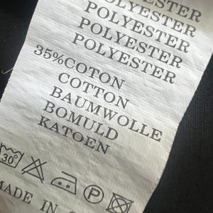 - Cotton and polyester blend (35% cotton, 65% polyester)