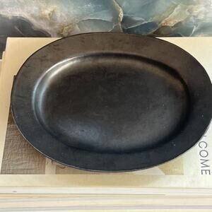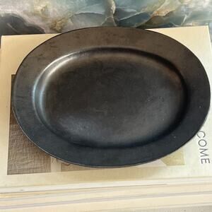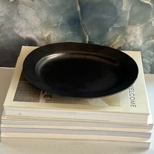 Black Clay Trinket Dish Tray Plate With Raised Edges 8.5 in Unique Marked