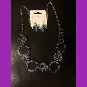 Black & Clear Animal Print Necklace & Earrings