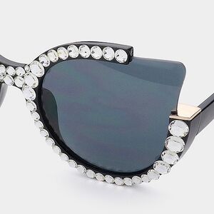 Black Clear Crystal Cat Eye Bling Sun Glasses Studded Shades Rhinestone