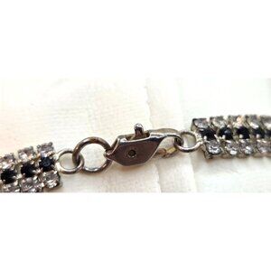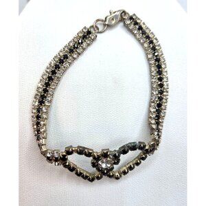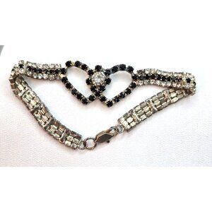 Black & Clear Rhinestone Double Heart Bracelet W/ Lobster Clasp