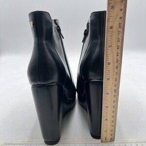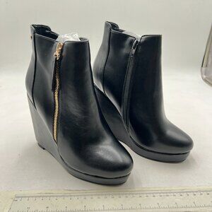 Black Closed Toe Low Platform Wedge Heel Double Side Zip Ankle Boots Walking Shopping Dress Shoes
