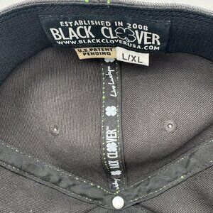Black Clover Hat Cap Fitted Mens L/XL Gray White Embroidered Golf Memory-Fit
