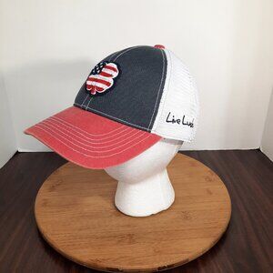 Black Clover Hat Red White Blue USA American Flag Logo SnapBack Golf Mesh Back. Excellent Pre Owned Condition.