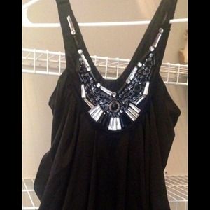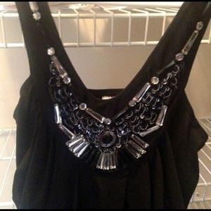 Super cute black jeweled club dress never worn! One size fits most. If it is too short for your liking it would be a cute club top!