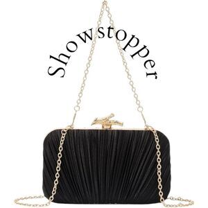 Black Clutch Purses for Women Evening Bag Pleated Clutch Bag with Chain