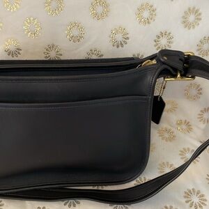 Black Coach Patricia legacy. flap bag with leather like butter. 12longx10high.