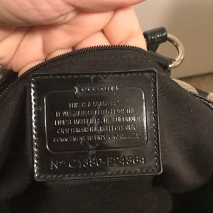 Black Coach Purse. 2 small pockets on inside with 1 large zipper pocket. Cones from a smoke free home. Very loved Purse but ready for new home. Some wear on the straps but not noticeable when on your shoulder. Seen in 3rd picture.