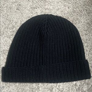 Stay warm and stylish with this classic black knit beanie. Perfect for any occasion.