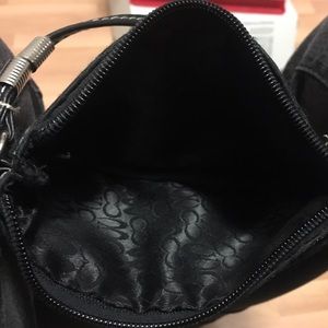 Adorable black Coach Wristlet! Only used a few times. It's in good condition with a couple of loose threads. The wrist strap is a bit twisted. Make an offer! 🎀