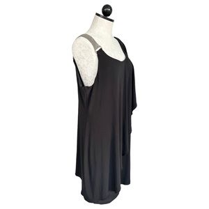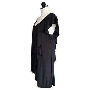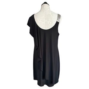 Black Cocktail Dress One Shoulder Silver Chain Strap One Flutter Fits Large