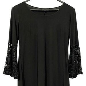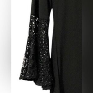 Black Cocktail Party Dress with Sheer Sequins Bell Sleeves Size 8