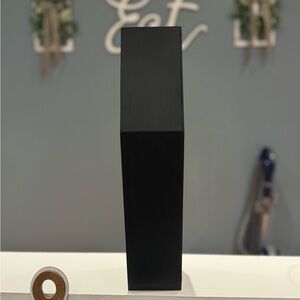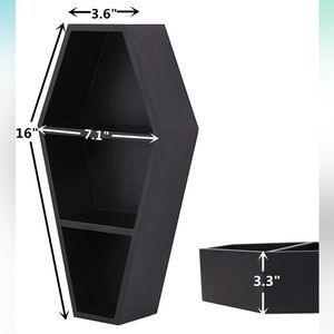 Enhance your home decor with this sleek black hexagonal wall shelf. Perfect for displaying your favorite items, this stylish piece adds a modern touch to any room. Measurements in picture
