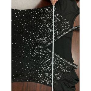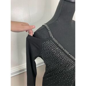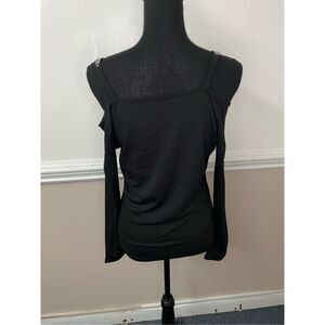 Black Cold Shoulder Sequin V-Neck Long Sleeve Blouse Size Large