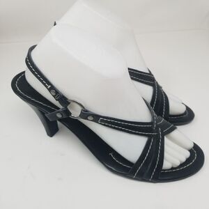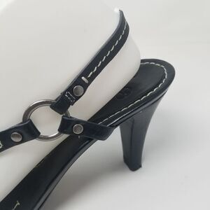Very nice good used condition. Size 9B. Black leather slip on heels. Heel height is approximately 3.5". Cole Haan makes very good quality shoes.