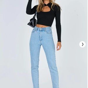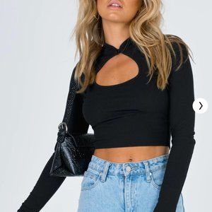 Princess Polly Black cropped long sleeve collared top. Goes with everything!!! Only worn once, in excellent condition.