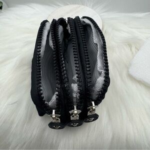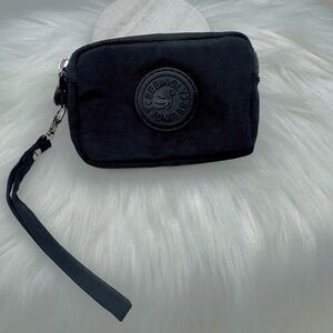 Wristlet features 3 zippered compartments made of durable polyester and nylon material. With a handle strap that fits small to medium wrists, this versatile wristlet can store makeup, accessories, or even function as a wallet for on-the-go convenience.