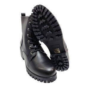 Black Combat Style Ankle Boots Women Size 10 Lace-Up & Zipper Closure