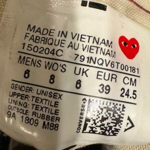 Black Comme des Garcons Play Converse Black Off White Sneakers Men’s 6 Women’s 8