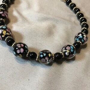 Black Confetti Beads Necklace and Earrings Set