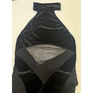 Black Contrast Mesh Velvet Sheer Halter Neck Open Back Flare Leg Jumpsuit Size L