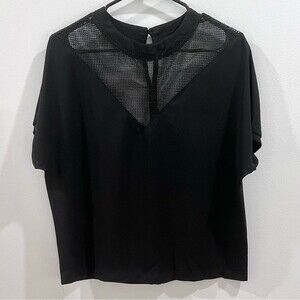 Black Contrast mesh vneck short sleeve top size medium Mesh yoke top. Keyhole button back. EUC