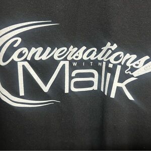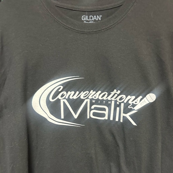 Stylish black tee with bold graphic. Comfortable and versatile for everyday wear. From the Conversations with Malik podcast.
