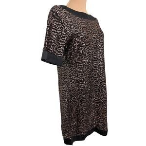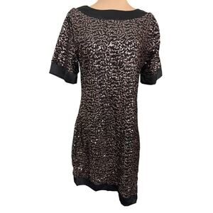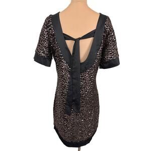 Black Copper Sequin Mini Dress L Satin Bow Back Cocktail Party Dress
