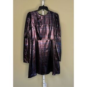 Black Coral NWT Waist Fitted Metallic Stripe Dress in Purple Size IT 44/US 8