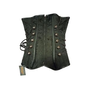 Elegant black corset featuring chain accents and button details. Perfect for a bold look. Size S/M, NWT