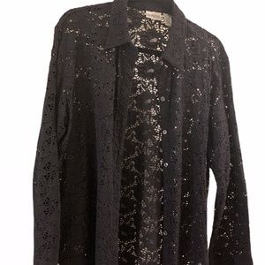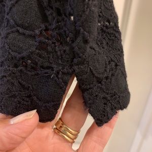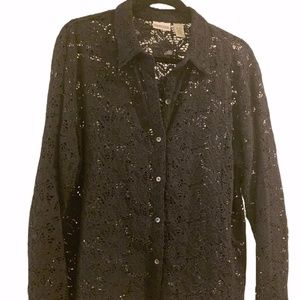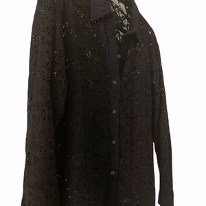 Fabulous and Versatiel Black Cotton Lace Top. Wear it as a blouse or over a cami or better yet spice it up and wear it over a bustier and jeans! Like new and gently worn!