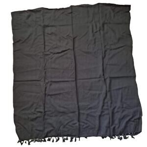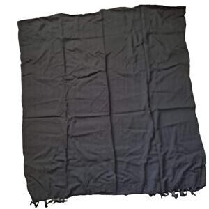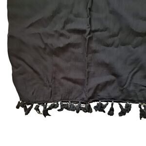 Black Cotton Rectangular Scarf with Pompom like fringes 42" X 88"