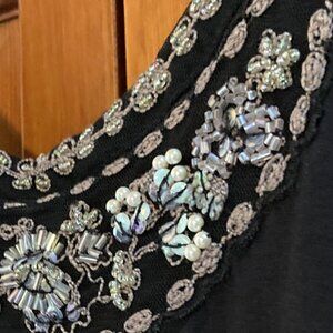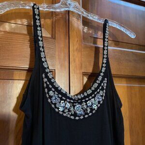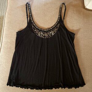 Selling this vintage black cotton tank top with beaded neckline and adjustable straps. Only worn once. Size Large. Not tags. Measurements below.